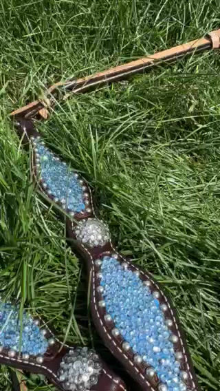 Light Blue Scalloped Crystal Bridle Breast Collar Set