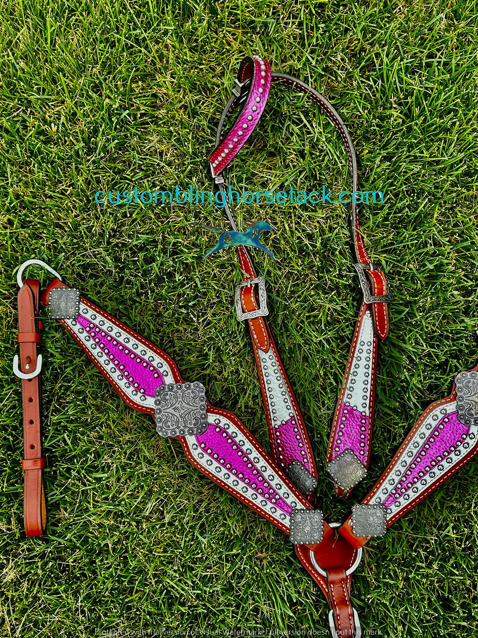Full Brow Pink & Clear Crystal Bridle Breast Collar Set