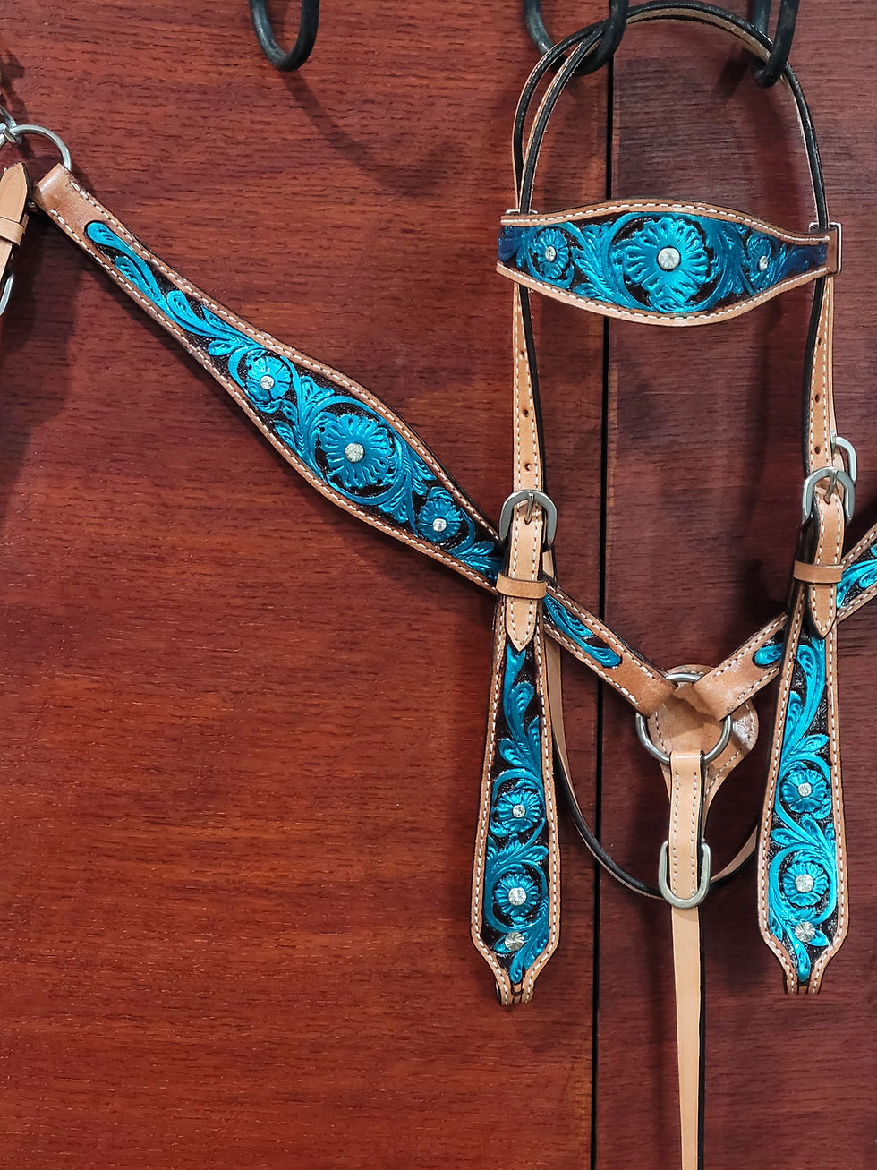 Teal Blue Bridle Breast Collar Rim Set Crystal Bling
